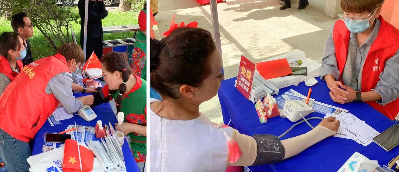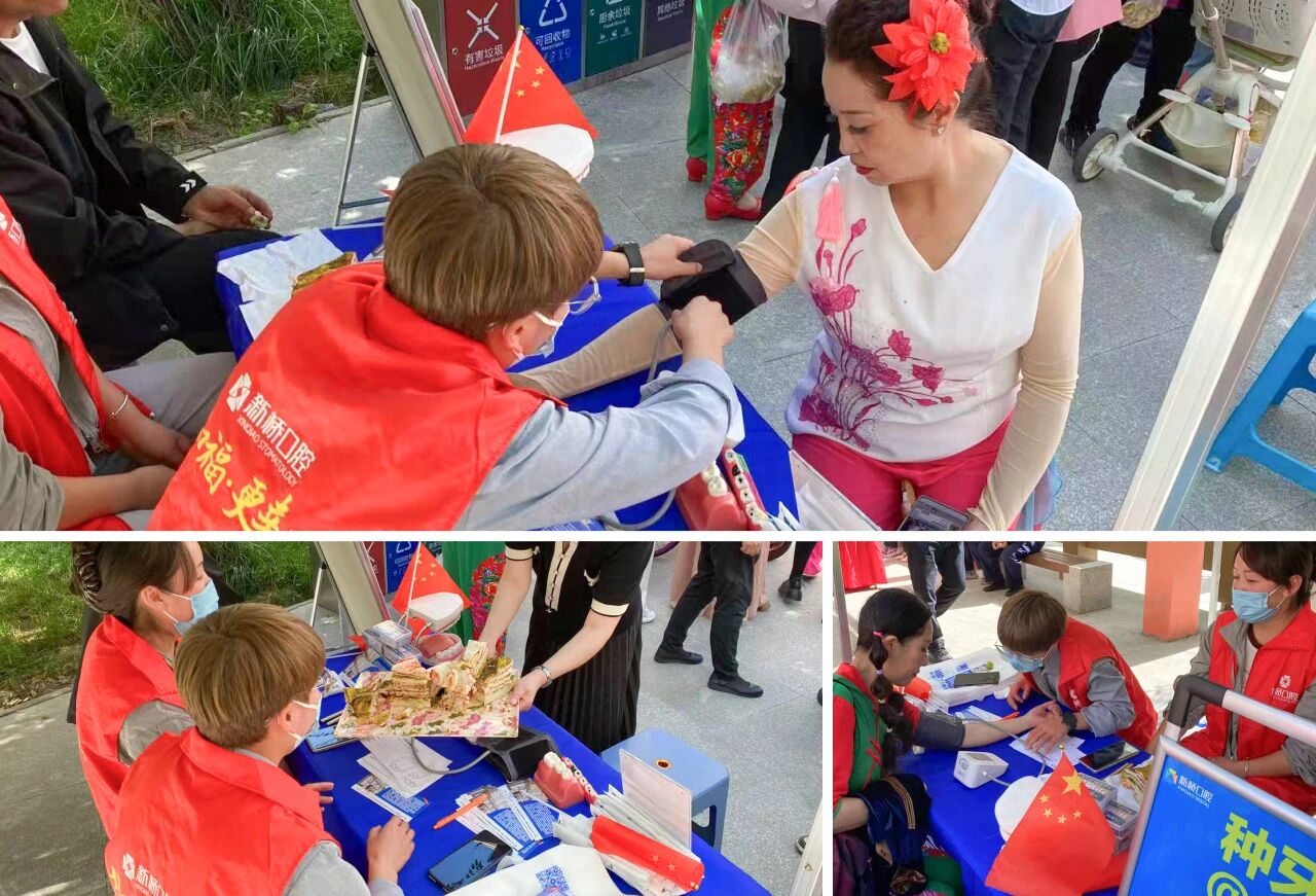 除精彩纷呈的文艺节目外,本次活动还特别设置由新桥口腔医护团队精心搭建的公益义诊咨询台,为前来观看演出的居民提供免费口腔健康检查与咨询服务,将专业的健康关怀送到“家门口”。医护人员耐心解答大家关于牙齿保健、修复、正畸等问题,同时还贴心准备口腔护理小礼品,让每份健康叮嘱都有实物相伴,把专业与温暖实实在在送到居民手中,让双节的喜悦多了一份健康的安心。