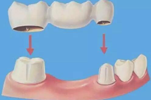 本身无法固位,需借助两颗邻牙搭桥,所以要对两侧的健康邻牙进行打磨。